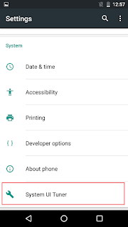 Step 3 :After Enable the System UI Tuner. Just Scroll the list of options in the settings screen . The last option added as "System UI Tuner"